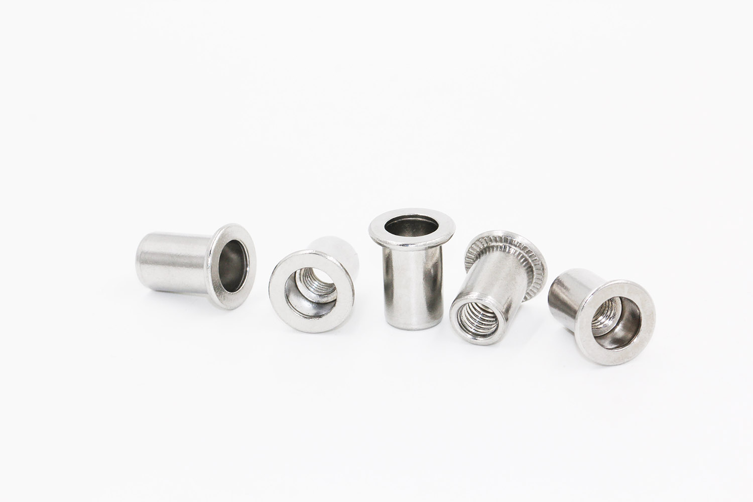 鉚螺母,又稱拉鉚螺母,拉帽,用于各類金屬板材、管材等制造工業(yè)的緊固領(lǐng)域,廣泛地使用在汽車、航空、鐵道、制冷、電梯、開關(guān)、儀器、家具、裝飾等機(jī)電和輕工產(chǎn)品的裝配上。為解決金屬薄板、薄管焊接螺母易熔,基材易焊接變形,攻內(nèi)螺紋易滑牙等缺點(diǎn)而開發(fā),它不需要攻內(nèi)螺紋,不需要焊接螺母、鉚接牢固效率高、使用方便。