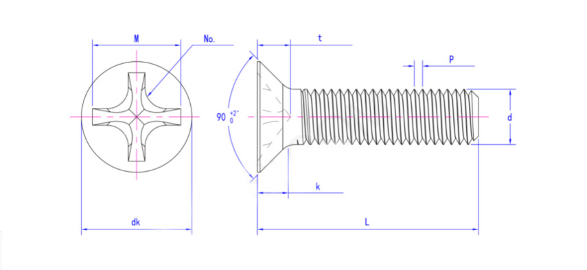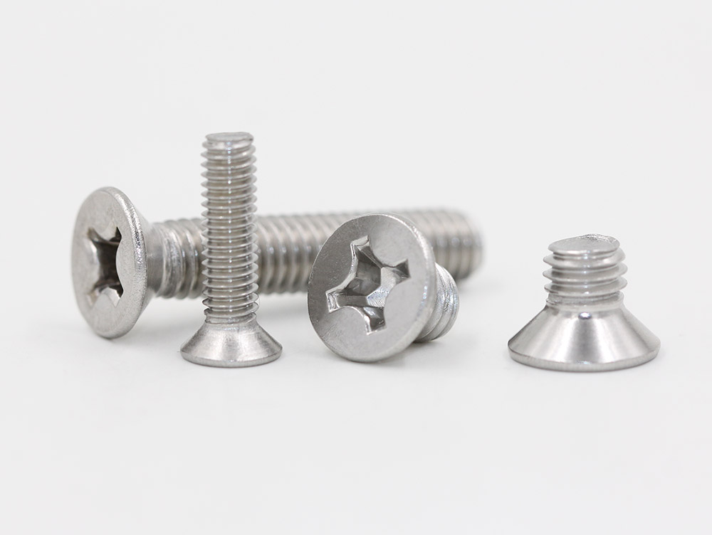沉頭螺絲,又稱作平機螺絲,其頭部,是一個90度的錐體,和常見的木螺絲類似,頭部有工具擰緊槽,有一字形、十字形、內(nèi)六角形等。在連接件上的安裝孔的表面上,加工有一個90度的錐形圓窩,平機螺絲的頭部在此圓窩內(nèi),和連接件的表面平齊。平機螺絲在一些場合使用的也有半圓頭平機螺絲,這種螺絲比較美觀,用于對表面可以允許少許突出的地方。